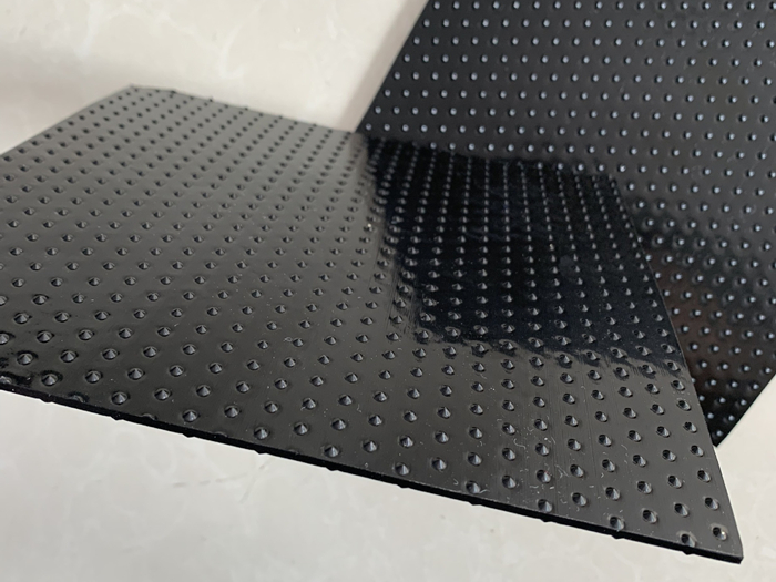 HDPE單柱點(diǎn)糙面土工膜是新型防滲材料,單柱點(diǎn)、雙柱點(diǎn)等HDPE土工膜增加摩擦系數(shù),防滑功能,更加適用于陡坡及垂直防滲,提高工程穩(wěn)定性。HDPE土工膜具有溫度適應(yīng)性,可焊接性,耐候性和良好的抗老化性、耐化學(xué)腐蝕性、耐環(huán)境應(yīng)力開裂性能及抗戳穿性能。因此,特別適合地下工程、采礦工程、垃圾填埋場(chǎng)、污水或廢渣處理場(chǎng)作為防滲漏材料用。